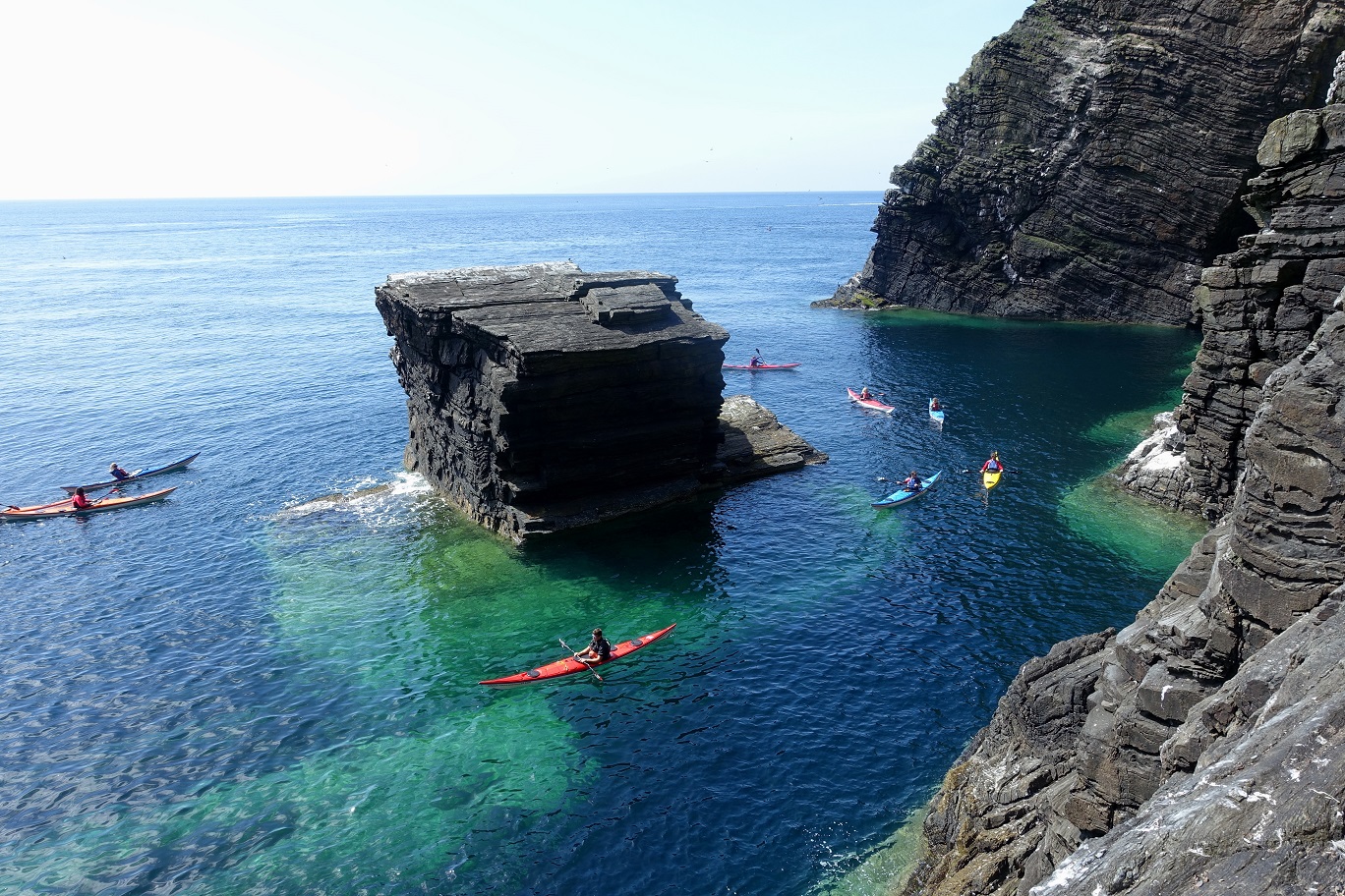 وتتميز جزيرة مان بأن لها مناخ محيطي معتدل، متوسط هطول الأمطار أعلى من المعدل في إقليم الجزر البريطانية، لأن جزيرة مان بعيدة بما فيه الكفاية عن أيرلندا للرياح الجنوبية الغربية السائدة لتجميع الرطوبة، ومتوسط هطول الأمطار هو الأعلى في Snaefell، حيث يبلغ حوالي 1900 ملليمتر ( 75 بوصة ) في السنة، وفي المستويات الدنيا، يمكن أن يكون حوالي 800 ملليمتر ( 31 بوصة ) في السنة، وأعلى درجة حرارة مسجلة كانت 28.9 درجة مئوية ( 84.0 درجة فهرنهايت ) في رونالدزواي في 12 يوليو 1983 .