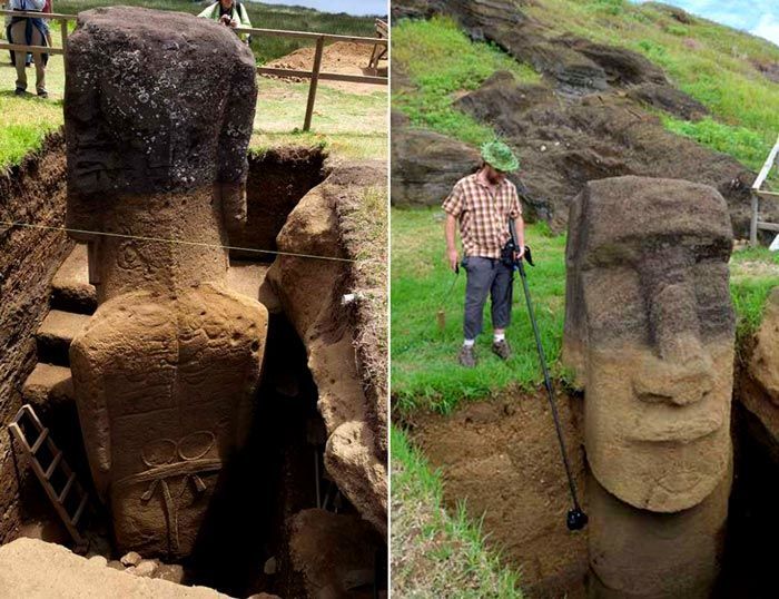 ويعتد علماء الآثار أن تلك التماثيل تخص علماء البولينيزيين القدماء،وهذه التماثيل في أول الأمر لم يكن يظهر منها إلا وجه ولكن بعدما نقبوا العلماء من حولها فوجوا أنها لخها باقي تحت الأرض هبط إلى تحت بسبب العوامل الجوية مع مرور الزمن.