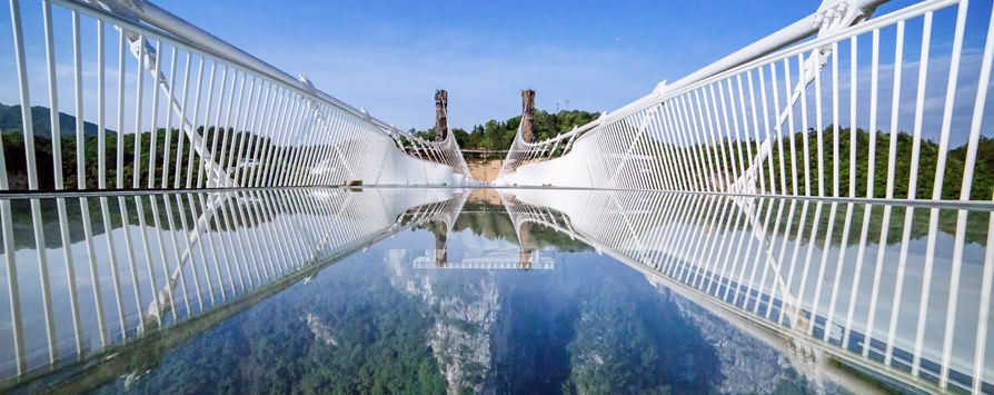 يعتبر جسر الصين الزجاجي تشانغجياجيه ، المعروف باسم جسر تشانغجياجيه جراند كانيون ، أطول جسر زجاجي في العالم ، و هو معلق فوق تشانغ كياجيه جراند كانيون ، و يبدو و كأنه قطعة من الحرير الأبيض تطفو بين السحب و الضباب ، ومن ثم يطلق عليها أيضا Yuntiandu ، و هذا يعني “وسيلة للسحب إلى السماء”.