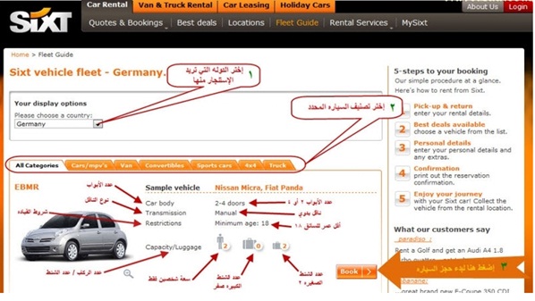 قم بالدخول على الرابط التالي: http://www.sixt.com/fleet-guide