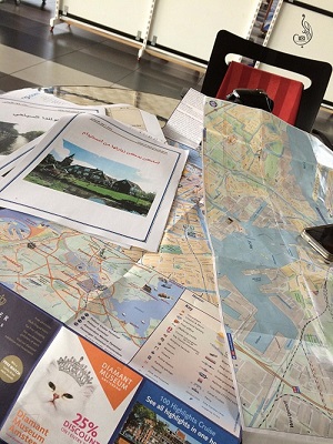 بعد ان وصلنا الى محطة القطارات الرئيسية في وسط امستردام كانت خطتنا التجول في امستردام لكن معنا الشنط كان لازم نتخلص منهن عشان نعرف نتحرك ، اتجهنا الى مركز الاستعلامات وسألنا عن اهم الاماكن السياحية في امستردام واخذنا خريطة امستردام . هذه الخريطة جدا مهمة فيها خريطة وسائل النقل (الباصات والترام) والاماكن السياحية وكيفية الوصول لها. بعد ذلك اخذنا تذاكر لاستخدام المواصلات العامة (باصات ، الترام ) لمدة 24 ساعة وكان سعرها 7.95 يورو.