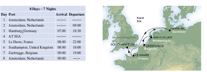 اليوم السابع: امستردام (هولندا)هذه صورة توضح مسار رحلتنا بالسفينة