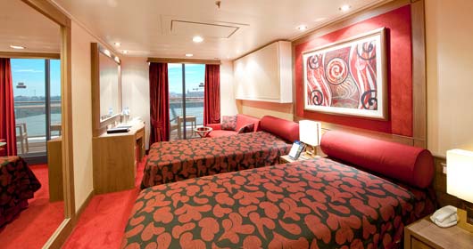 سألنا عن مكان الغرفة ودلونا انها بتكون في الطابق التاسع وطبعا رقم الغرفة مكتوب في البطاقة. وصلنا الغرفة وفتحنا الباب بالبطاقة طبعا ، وكانت المفاجأة الاولى . المفاجأة هيه ان الغرفة تحتوي على بلكونة مع العلم ان حجزنا كان غرفة داخلية بدون بلكونة لانها ارخص ، وكان السبب ان الشركة الي حاجزين من عندها عملت لنا ترقية للحجز كهدية من عندهم ( ماقصروا)وبصراحة ما كنا متوقعين ان الغرف تكون كذا، كانت ممتازة وفي دولاب للملابس ودورة مياة الله يعزكم وبلكونة طبعا ، وتلفزيون . في التلفزيون يكتبو اسمك وفي برامج عن كل مرافق السفينة وحتى البرنامج اليومي موجود في التلفزيون. اترككم مع صور الغرفة.