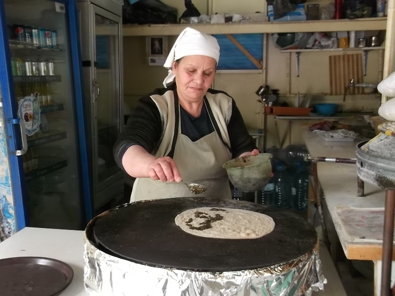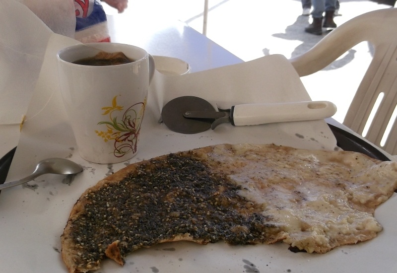 المهم يا جماعة.. كان محجوزلي بفندق روتانا الحازمية بمنطقة سن الفيل، حطّيت أغراضي فيه وقلت بدي أفطر منقوشة لبنانية دافية ومقرمشة عالصبح.. وكانت هذه السيدة اللطيفة بآخر الشارع وطعمتني بدون مبالغة منقوشة كتير زاكية.