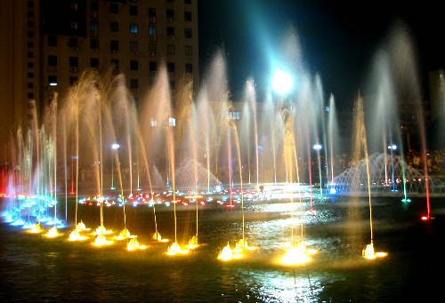 تعتبر الرابعة من نوعها في العالم من حيث الضخامة وتعدد الأحواض والنوافير، وتقع قرب صالة التزلج وتضم ثلاثة أحواض متدرجة تشمل 220 نافورة تتيح التمتع بمشاهدة المياه الملونة الراقصة على أنغام موسيقية ممتعة، حيث ترقص مياهها بالألوان الزاهية على الألحان الموسيقية.