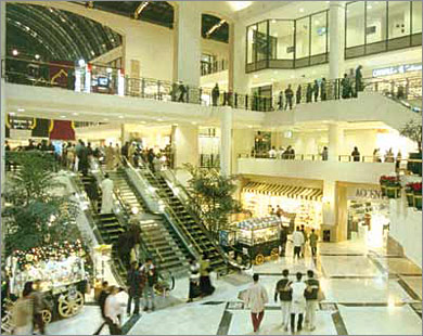 القسم الأول هو المجمع التجاري . . يحتوي على اشهر محلات الملابس و الأكسسوارات و التجميل و المفروشات . . من اشهر المحلات العالمية . . و توجد في وسط المجمع قبة زجاجية كبيرة . . و في الوسط مجموعة من المطاعم و المقاهي . . اما في الطابق العلوي للمجمع . . فيحتوي على مطاعم للوجبات السريعة . . Food Court . . يوجد ايضا محلات للعب الأطفال و صالات للسينيما . .